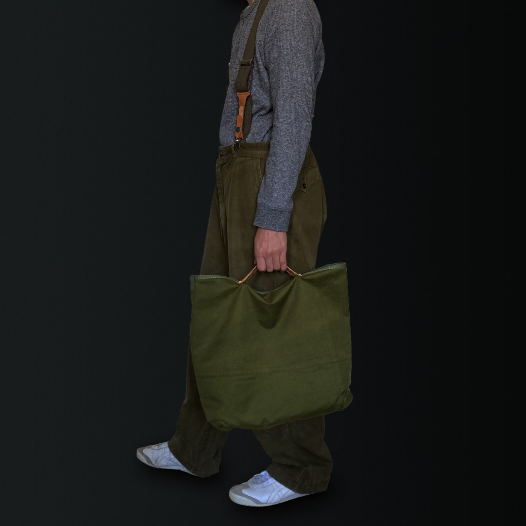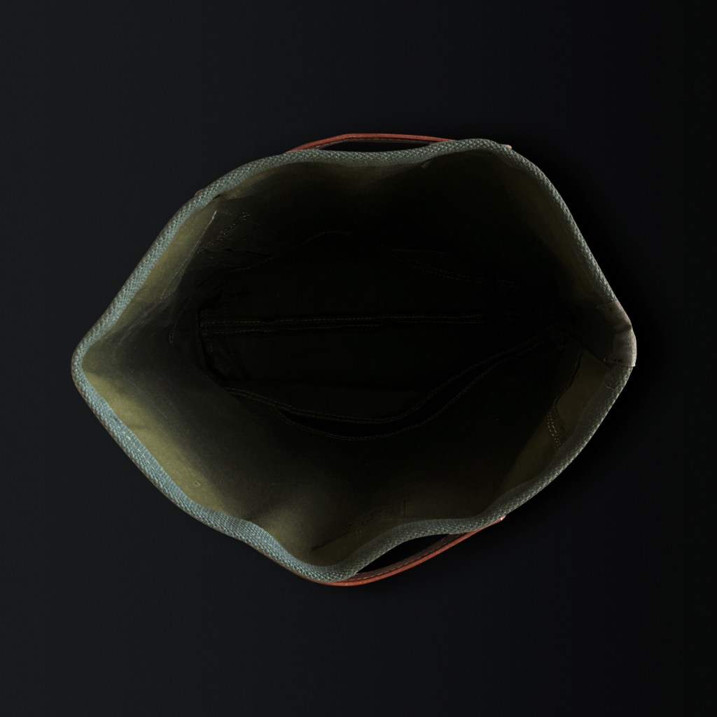 Dual-layered tote bag with horizontally attached leather handles.