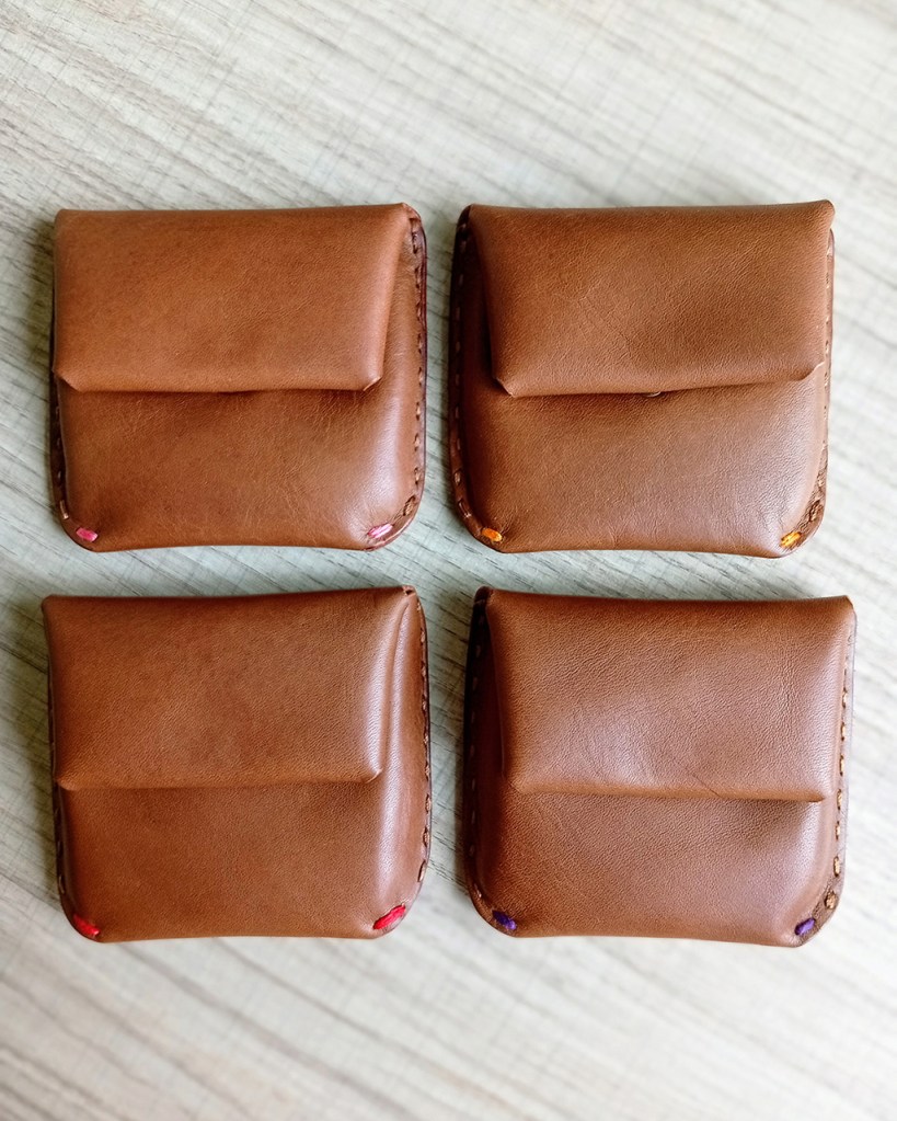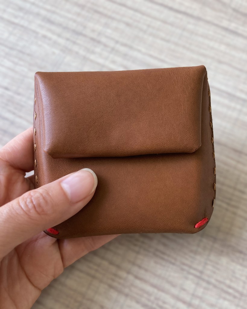This charmingly shaped pouch is made from smooth, supple, high-quality vegetable-tanned leather.