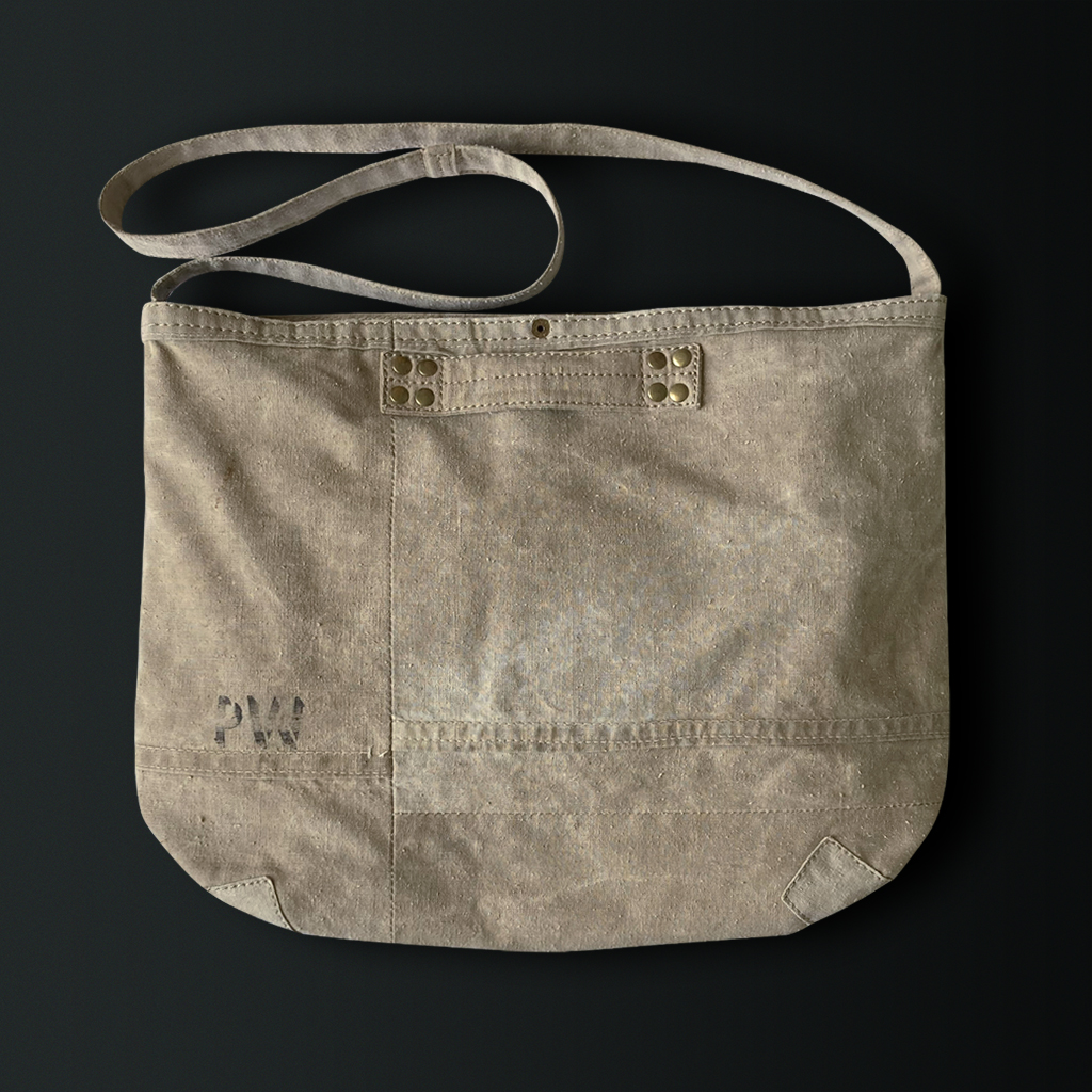A shoulder bag made from Eastern European army tent fabric dating back over 50 years.