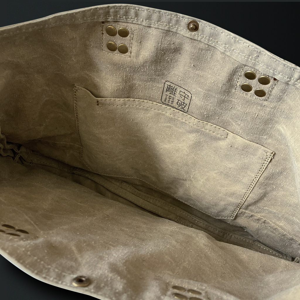 In addition to its practical size, it features atmospheric stenciling on both sides and unique Japanese hardware as part of the design.