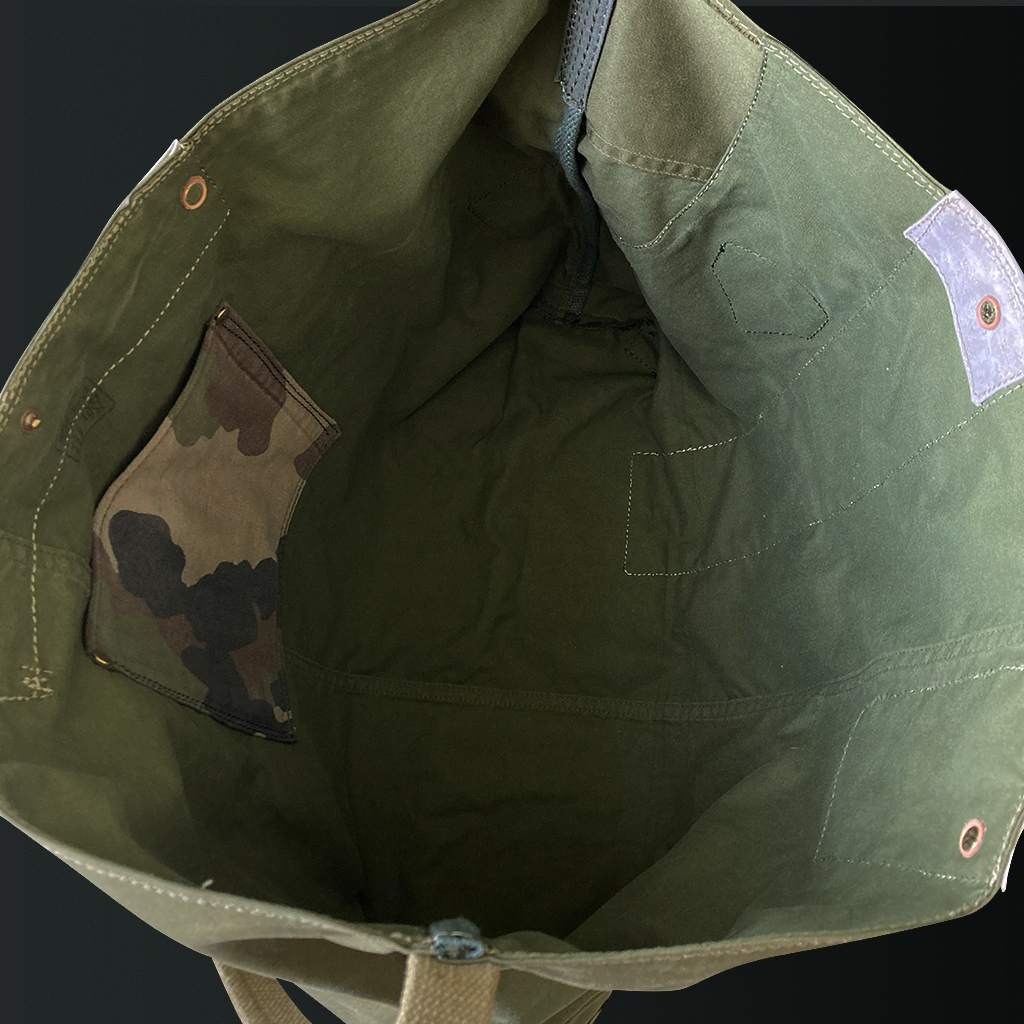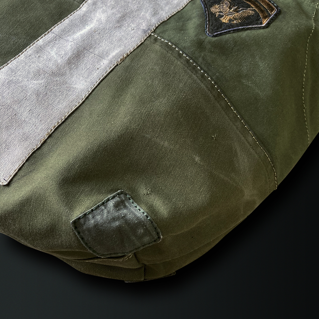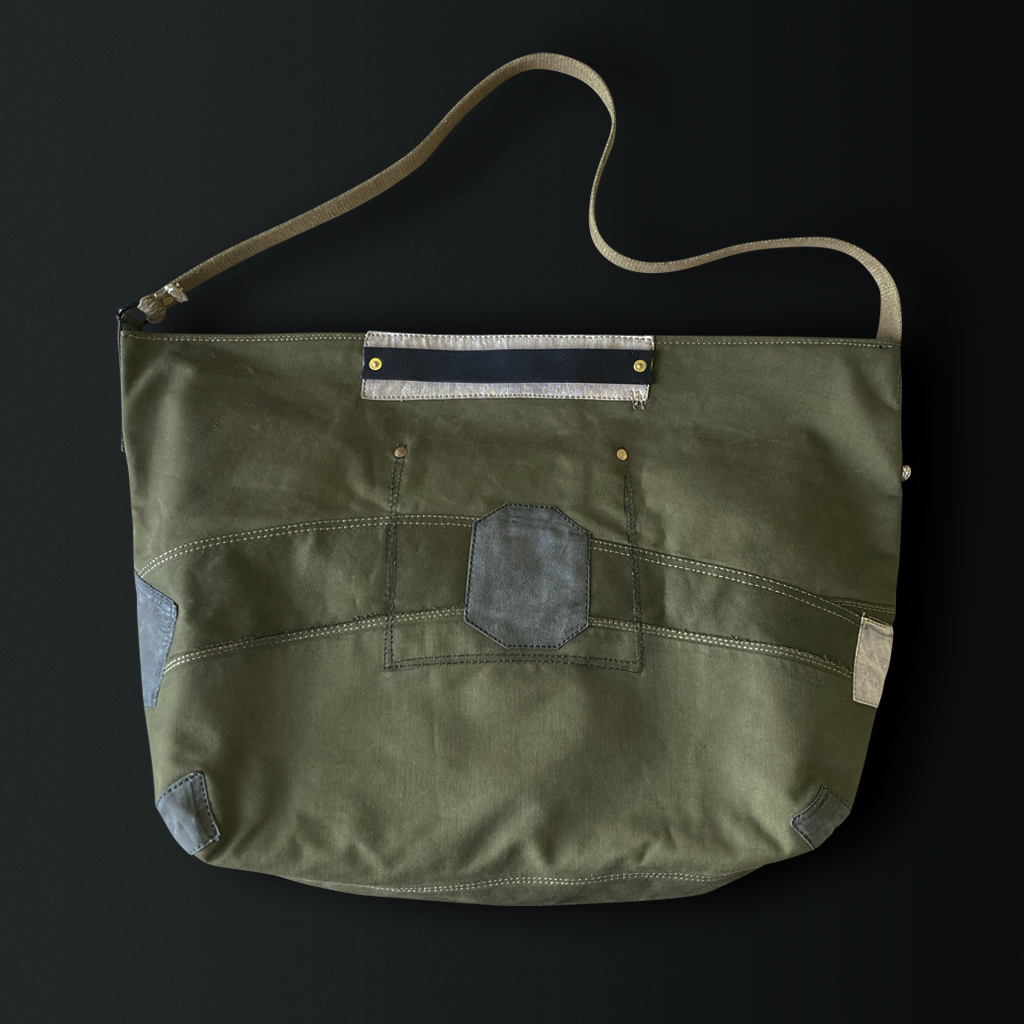 Kasuri is known for its unique, blurred patterns, created by intentionally blurring the outlines of the design. This bag was crafted to express the beauty found in such imperfections by combining various fabrics.