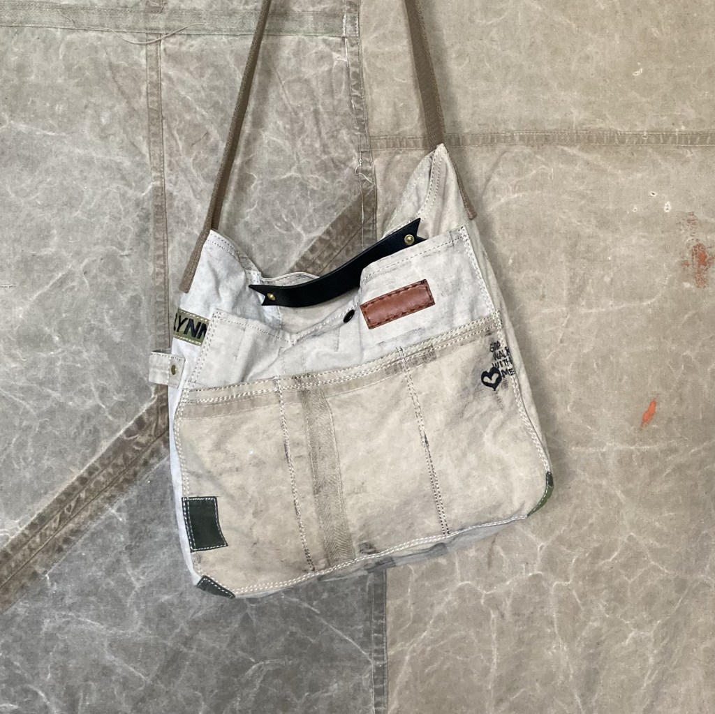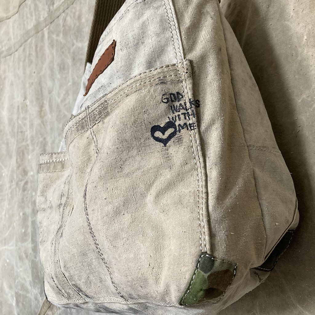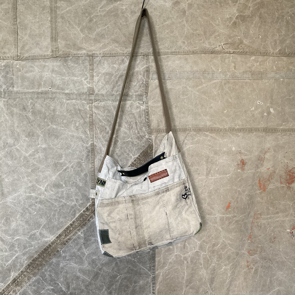 Upcycled from Eastern European military tent fabric made over 50 years ago.