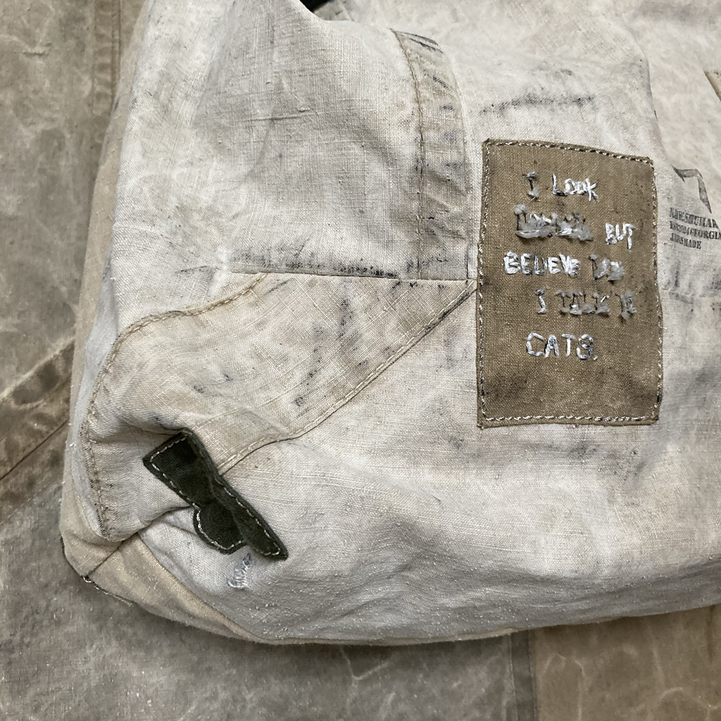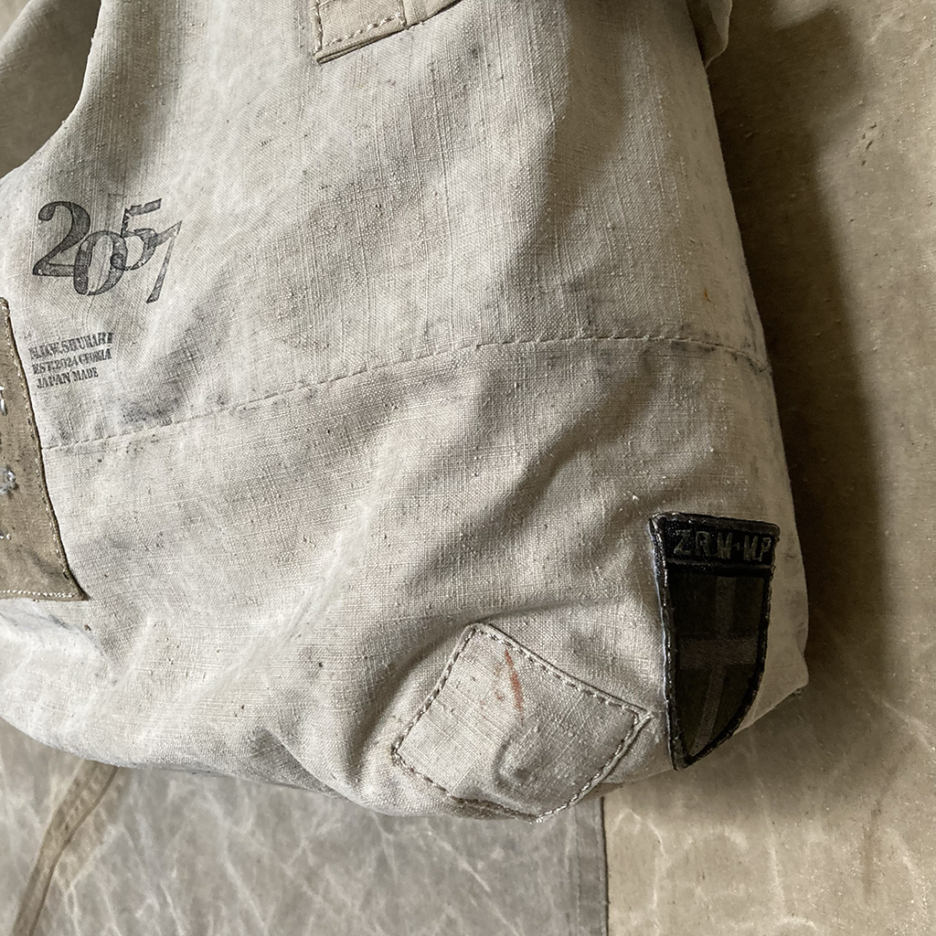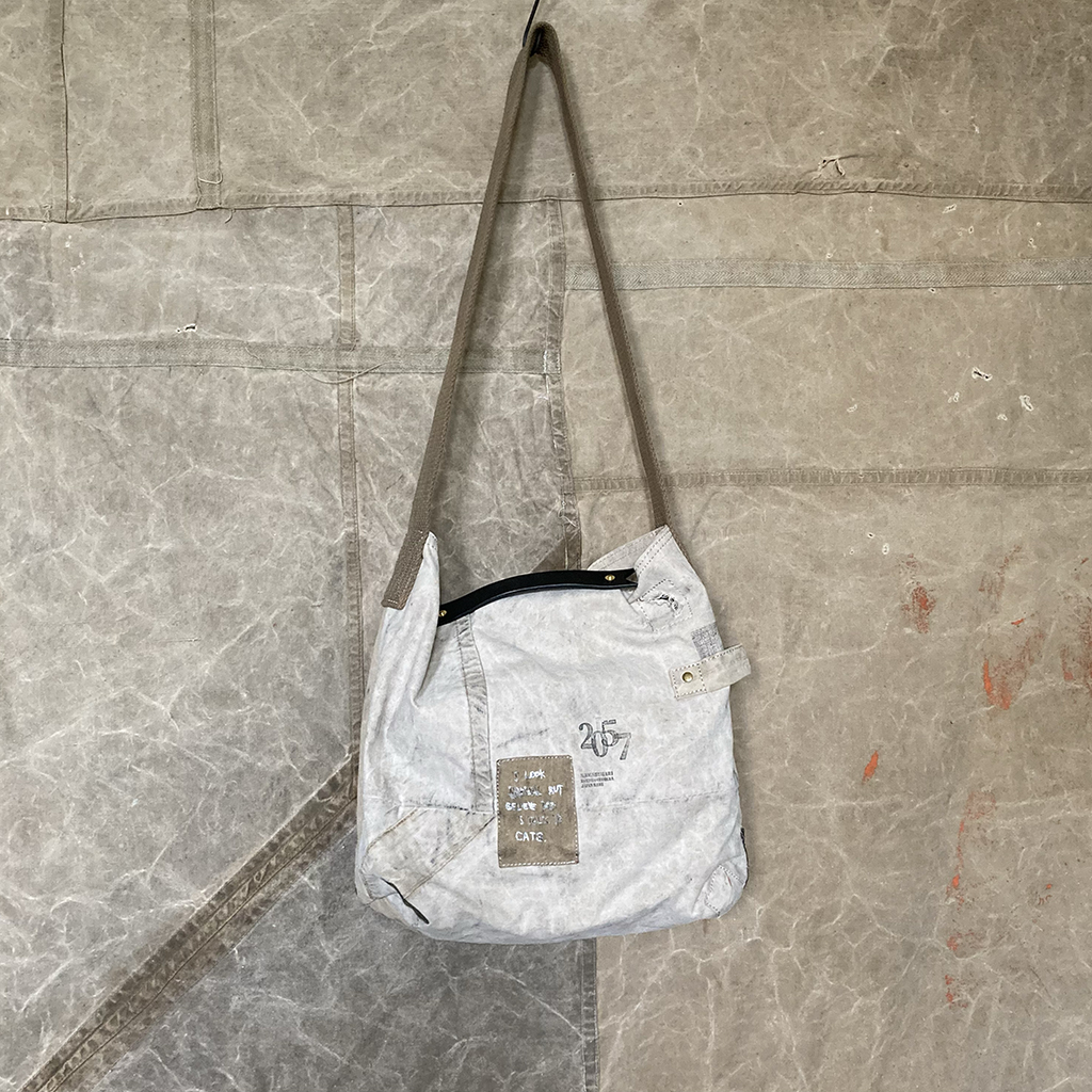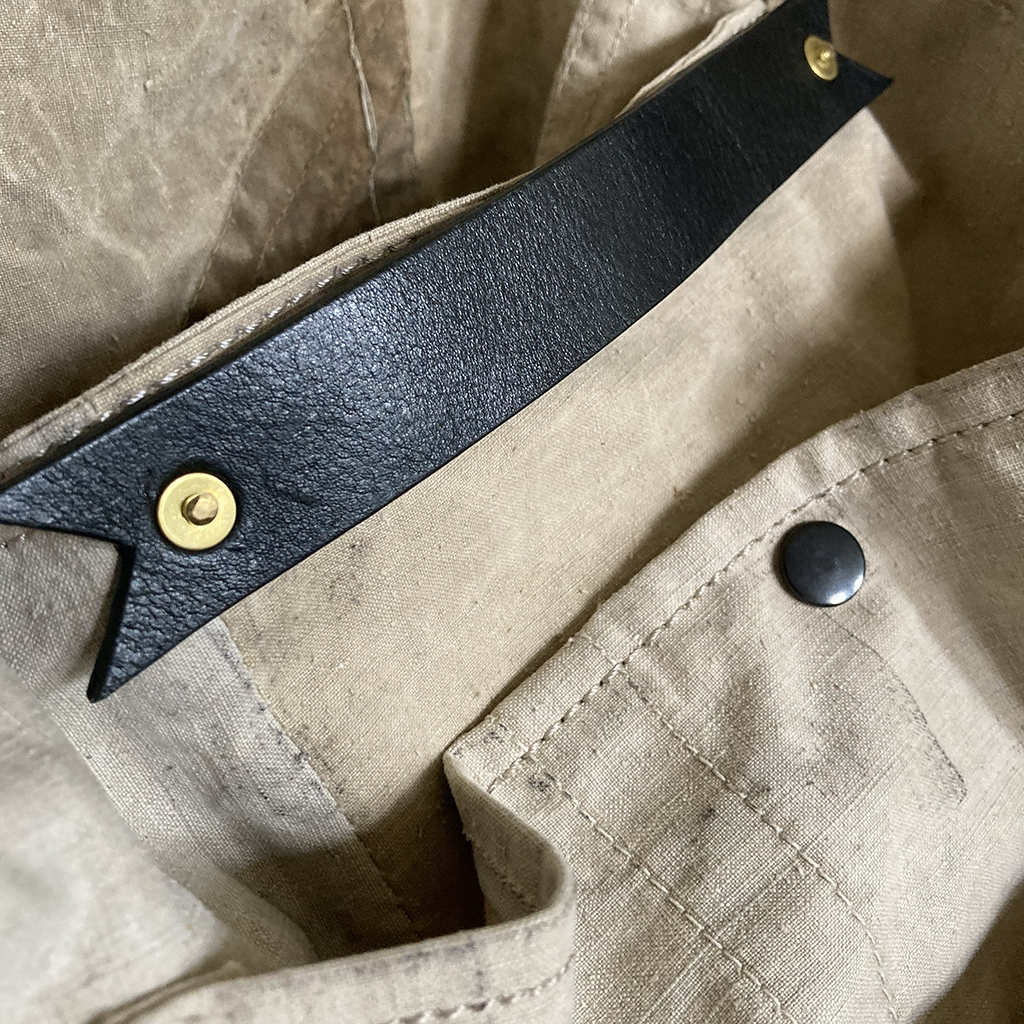 Upcycled from Eastern European military tent fabric made over 50 years ago.